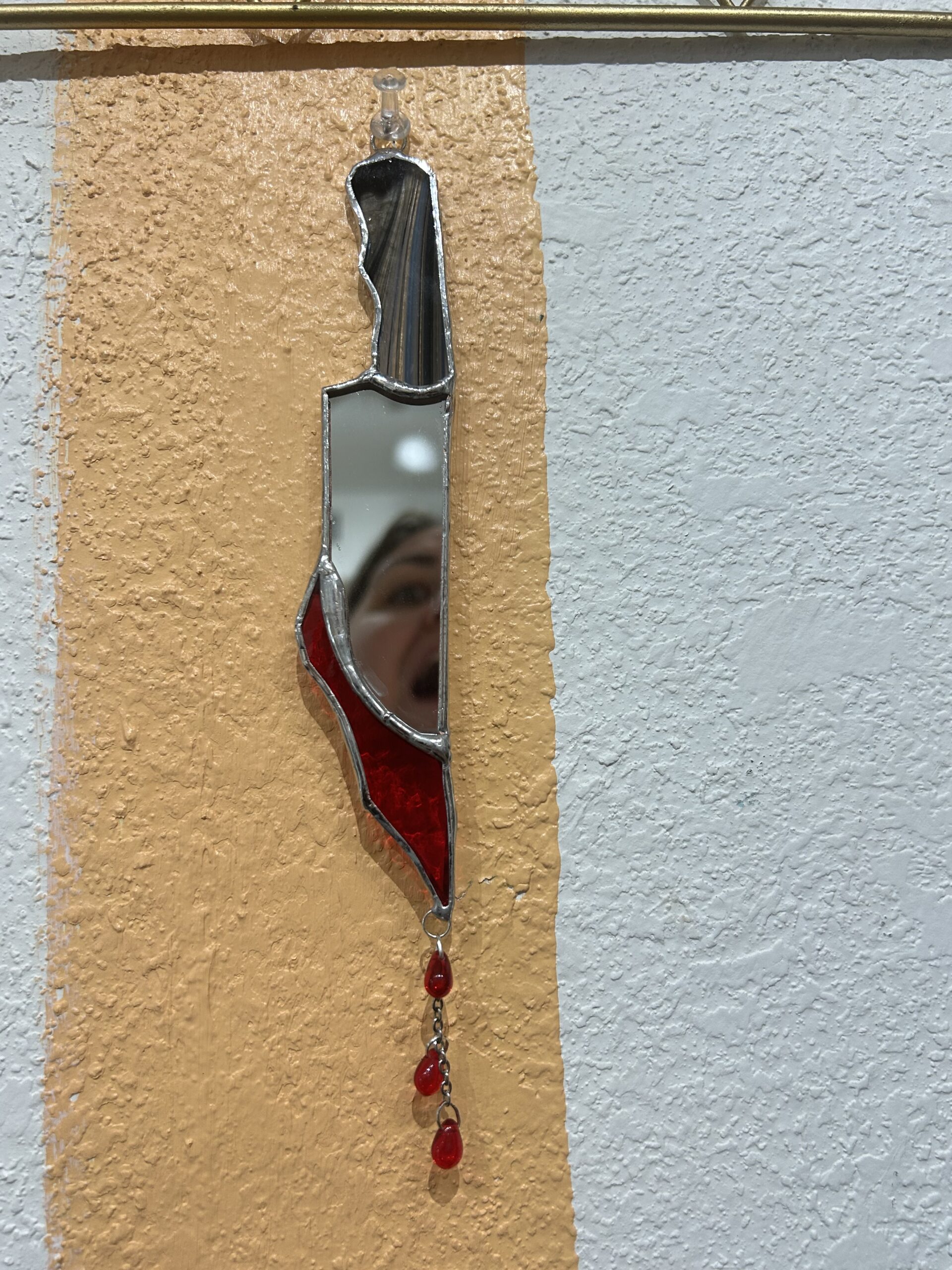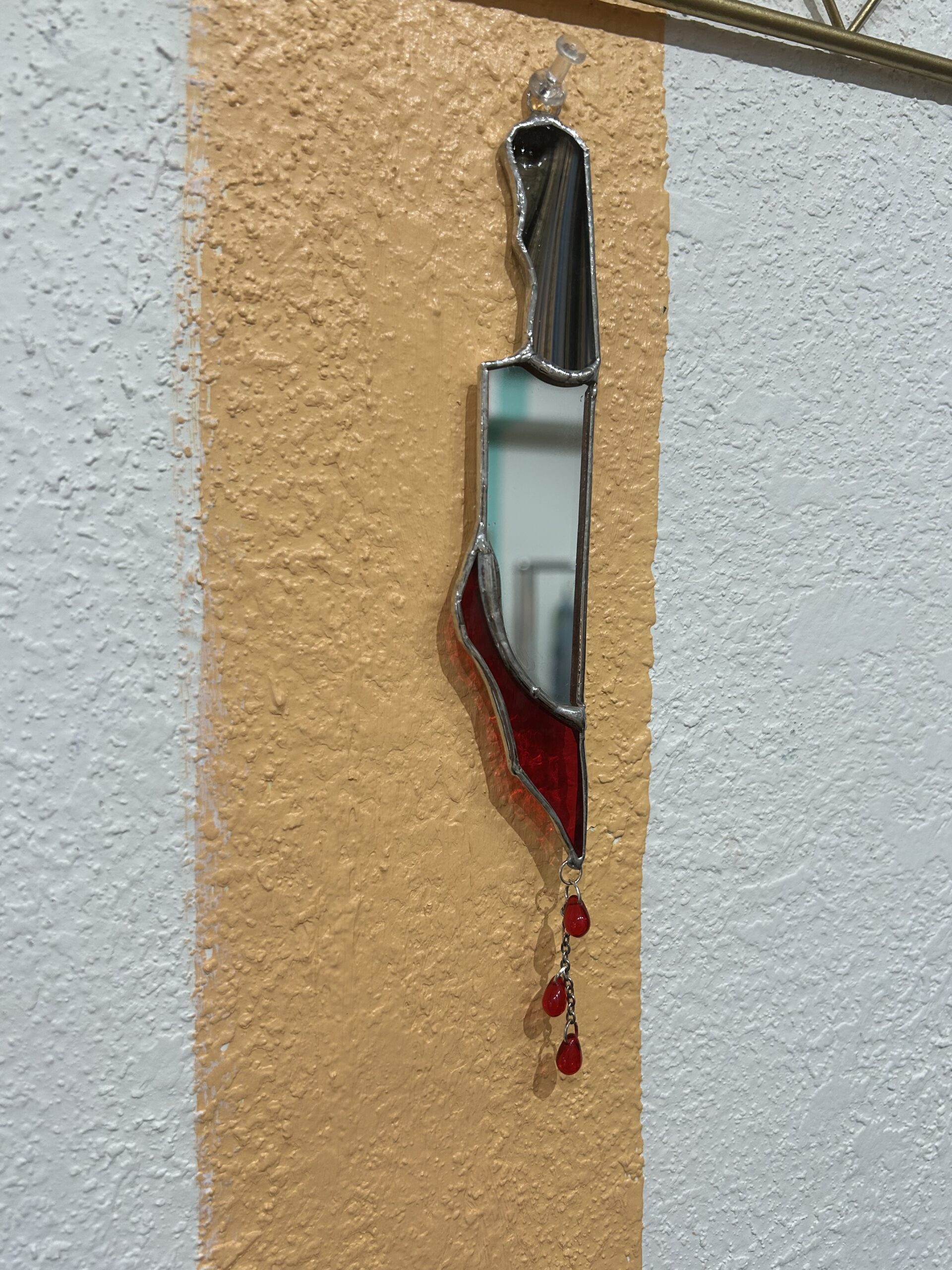 What Are We making?: ‘bloody’ knives! Made out of mirror, and bright red glass, with little blood drop beads to hang from the tip! You will get to pick from a variety of colors for the knife handles! Leave your color of choice in the comment section when checking out.